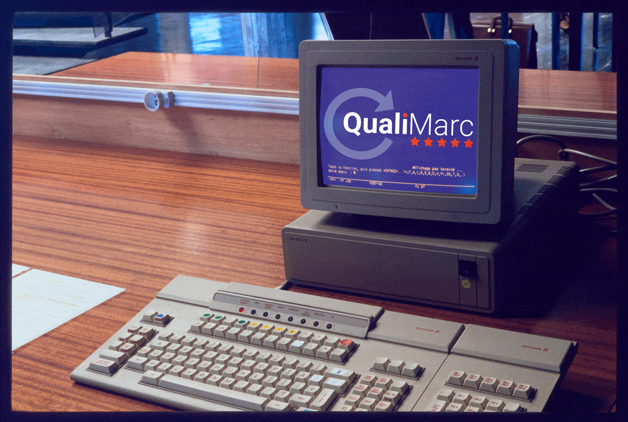 Crédits visuels (par ordre d’apparition) : Poste de consultation du catalogue, septembre 1986 - Université Bordeaux Montaigne, fonds photographique (photographie modifiée) / Logo Qualimarc - Agence Bibliographique de l’Enseignement Supérieur (Abes), CC BY SA / 17-9-11, départ du marathon de la F.C.A.F. : [photographie de presse] / [Agence Rol] - Agence Rol, Public domain, via Wikimedia Commons (modifiée) / Logos des établissements du Rebub