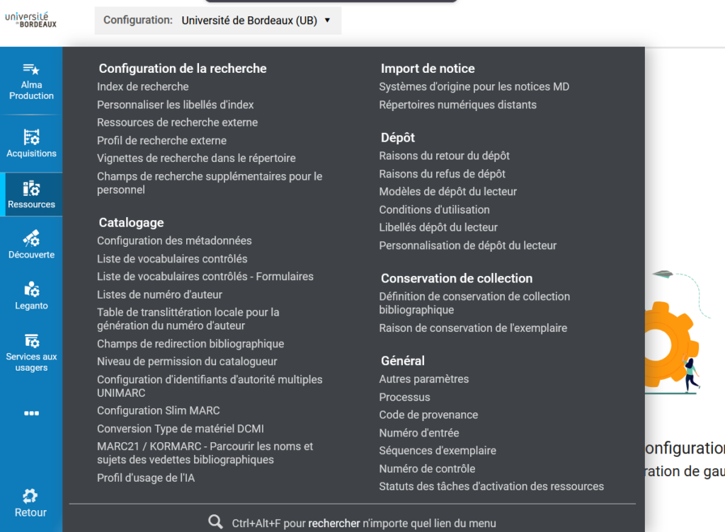 Pour cela, il faut se rendre dans les paramètres de personnalisation d’Alma :