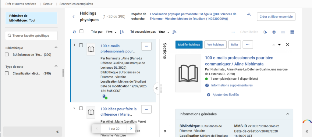 En utilisant une police de petite taille, l’affichage par défaut pour la recherche de titres se fait sur un seul écran (vue complète).