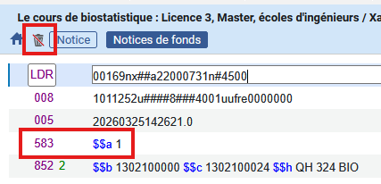 Taper l’étiquette de zone 583 puis $$a