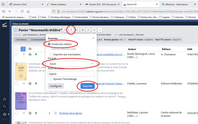 Dans Electre, exportez votre panier au format Excel.