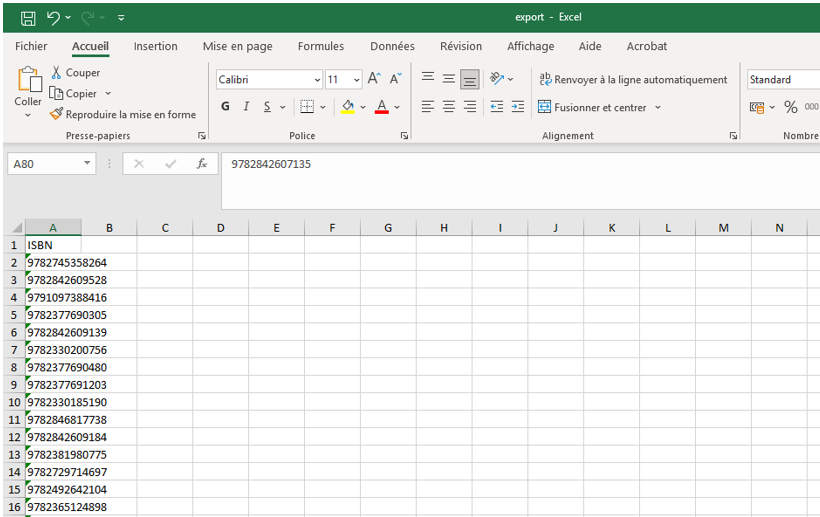 • Renommez la colonne EAN ISBN
